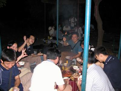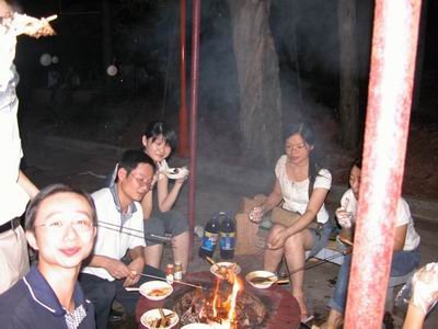有燒烤的極品——牛肉、雞腿、雞翅、豬排……,另外還配備飲料、水果、最重要的是月餅……西西