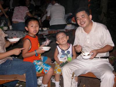 孫總連同家屬也出場(chǎng)了本次的慶祝活動(dòng),看他們父子三人,吃得不亦樂乎!