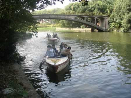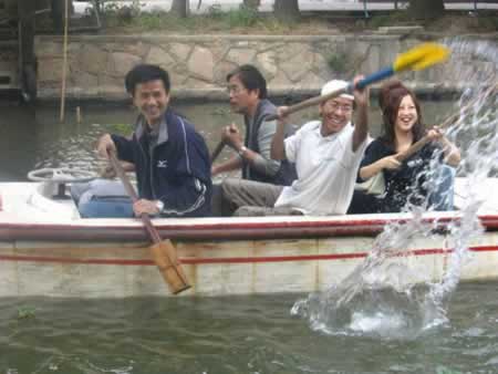 劃船比賽開始了,第一組有策略得想把第二組擠到一邊。