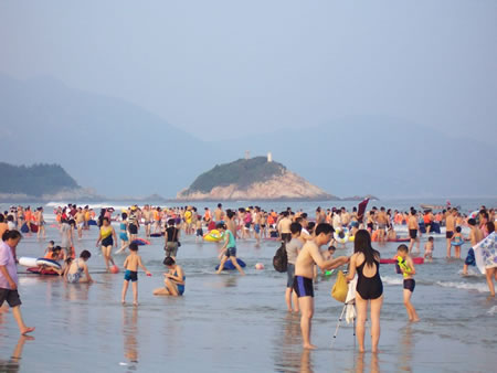 十月國慶,天氣放晴,廣分上川團(tuán)一行二十二人,浩浩蕩蕩來到了位于臺山的上川島。上川島有很多迷人的海灘,最受歡迎的是飛沙灘(4800米)、金沙灘(5200米)、銀沙灘(800米),三者間相隔僅一公里,雖各沙灘風(fēng)姿各異,但均呈現(xiàn)出沙質(zhì)潔白細(xì)膩、海水清澈見底子薄、沙灘平緩寬闊、海浪多而不大、腹地林木郁郁蔥蔥。
