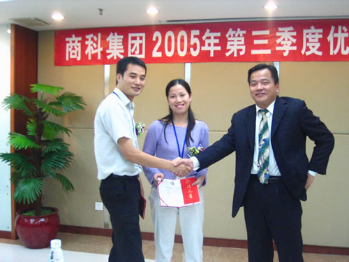 在這樣一個(gè)金秋收獲的季節(jié)里,商科集團(tuán)第三季度的優(yōu)秀員工表彰大會(huì)于2005年11月1日在廣州天河北光大銀行大廈的會(huì)議中心隆重舉行。商科總部的全體工作人員和廣州分公司所有員工無(wú)不到場(chǎng)。