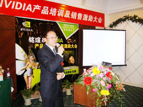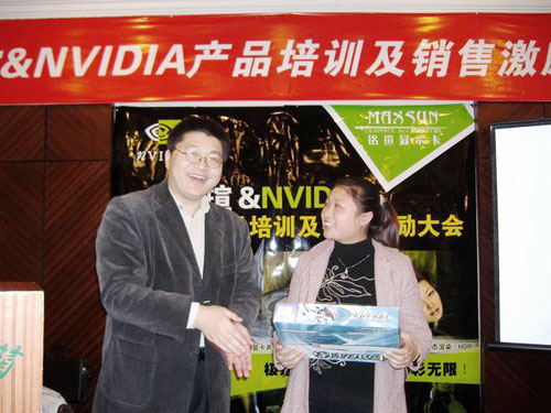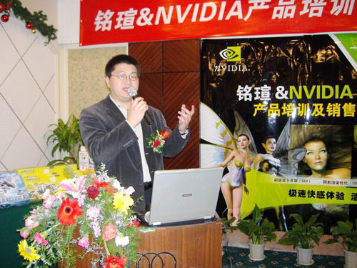 緊接著NVIDIA中國區(qū)銷售經(jīng)理侯宇濤先生對NVIDIA的成長歷程,先進的顯示技術,產(chǎn)品的市場走勢做了詳細介紹。特別對今年nVIDIA“三重威力”所包涵的最新顯卡技術作了重點講解,陰影渲染優(yōu)化(SM3.0)、高精度動態(tài)渲染(HDR)和超級顯卡并聯(lián)(SLI)已經(jīng)在Geforce6及其以上的顯卡中得到了完美展現(xiàn),成為了NVIDIA今年快速成長的助推器,對于2005年度銘瑄攜手NVIDIA在市場推廣方面所作的努力表示肯定,并對雙方繼續(xù)加強合作表示了積極展望。