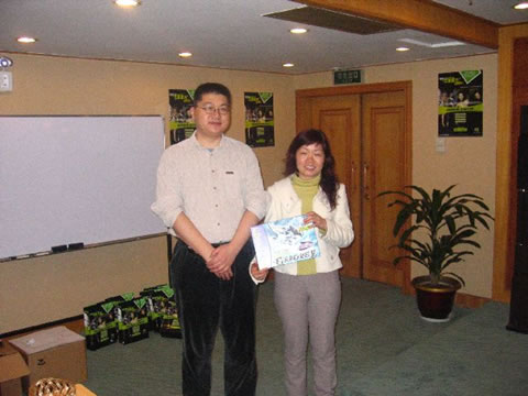 大獎(jiǎng)?wù)Q生,銘瑄6系顯卡!趙先生和侯先生分別頒獎(jiǎng),經(jīng)銷商們都興奮不已。