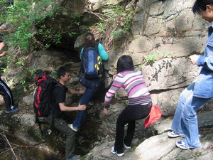 定向登頂“好漢坡”(400多個臺階,30CM左右的梯高,估計達到80度的陡坡。要達到“坡”頂,看來真的要用爬的啦!)