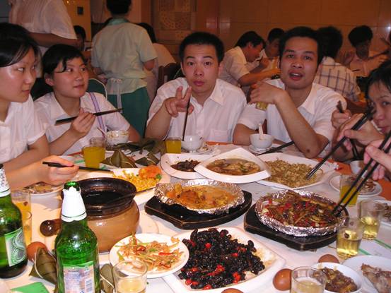 人都到齊了,怎么還沒有上菜。縼,我們先干一杯“祝大家端午節(jié)快樂”!