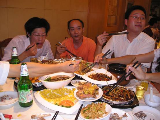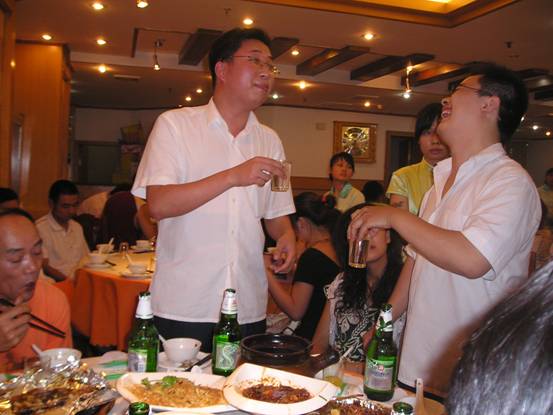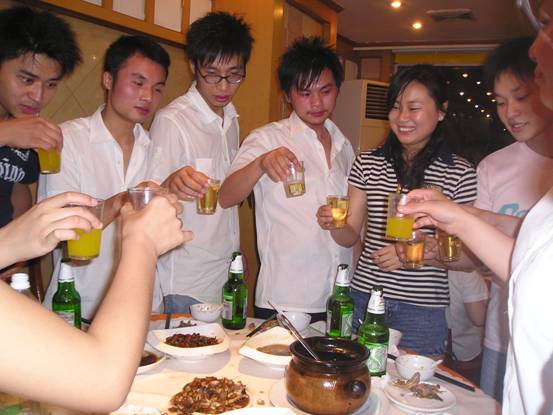 不能光顧著吃菜呀,菜可是用來下酒的,來!白酒滿上!先干為敬。