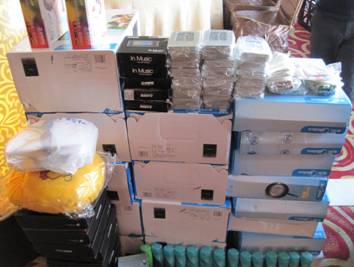 晚會游戲紀念品以及抽獎的部分禮品,除了這些禮品外還有現金獎,手機充值卡等等。