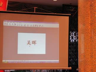 在屏幕中出現的1-54中,每個數字后面都代表中晚會在場的同事,看看誰會被選中呢?被選中的同事要參加我們準備的游戲《快樂傳真》。