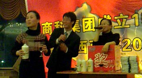 中獎的同事要想拿走獎品得先把龔姐手中的酒喝了!