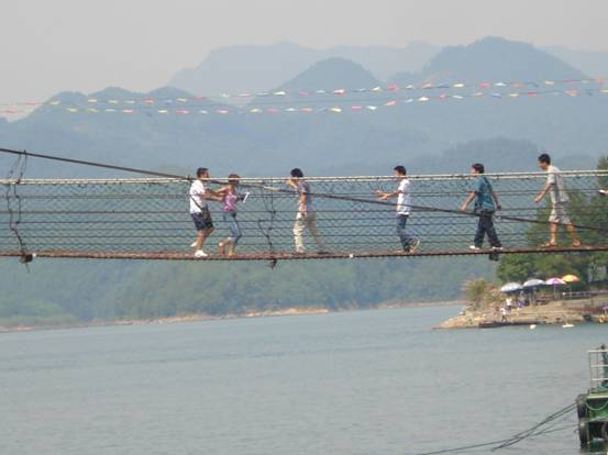 我們面向大山,腳下臨水,感受水天一色的自然風光,體驗“狀元橋”帶來的驚險。連我們上分最瘦弱的女生都不甘示弱,要來體驗一把。