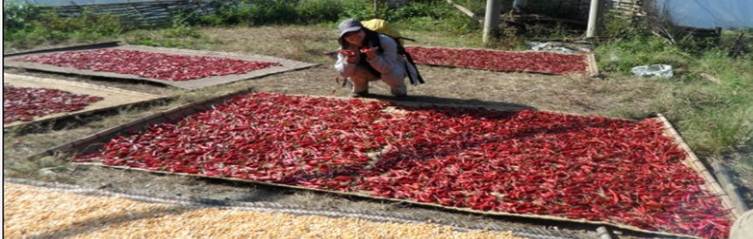 而高山、深谷的巨大落差,使得龍脊梯田周邊遠有高山云霧,近有河谷急流的大景觀,形成了世界一絕的自然生態景觀。它集壯麗與秀美為一體,長使游客擊節驚嘆。迭連云際的梯田抒寫了祖輩的篳路藍縷,滿山的紅辣椒展現著今天的紅紅火火。