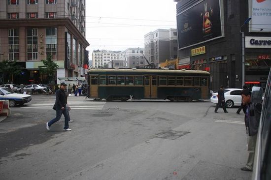 別具一格的有軌電車,據說是30年代一直沿用至今。(右上角黃色的招牌居然是“北京東來順”) 中午13:00登船離開大連。