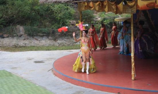 聽說這個可是這兒的招牌人妖呀。挺高的個兒。 表演很一般,別看這破的小臺,來看的人還挺多,看后發(fā)現(xiàn)真不怎么的,和海南那個人妖比起來真是太遜色了,沒看頭。哈哈。 接下來去的闖關東影視城,據(jù)說很多少電視劇和電影都有在這兒拍過,看了還真是。