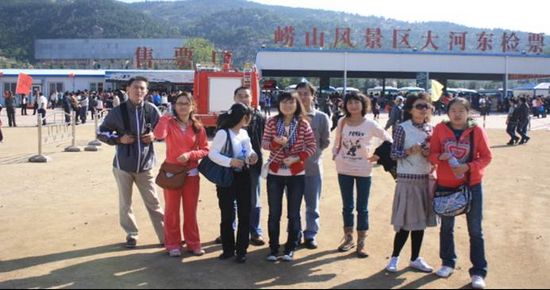 這去的是極地海洋館,那個表演真是讓人叫決呀。這些小家伙們真是太可愛了。 大連的行程到這兒基本上就結束了,由于天氣原因明天的一天就只能是在船上和車上渡過了。 我們的下一站青島,希望在青島能有個好天氣。青島三環(huán)海、一面依山,海岸迂回曲折,山色郁郁蔥蔥,兼有山海之勝。市區(qū)的房舍建筑層壘參差,風格各異,但多為紅瓦覆頂,兼有歐亞美各洲和中國民族風格,與碧海、藍天、綠樹共同構成了城市特有的風貌。位于青島東北部的嶗山旅游風景區(qū),一向以山峻石奇,林木繁茂、古跡眾多的而著稱。青島著名的旅游景點還有:棧橋、小青島、魯迅公園、海水浴場、八大關、嶗山的上清宮與下清宮、一灣之隔的黃島、平度的天柱山魏碑、即墨的田橫島等等。 都說來了青島就一定要上嶗山,它是山東半島的主要山脈,嶗山的主峰名為“巨峰”,又稱“嶗頂”,海拔1132.7米,是我國海岸線第一高峰,有著海上“第一名山”之稱。它聳立在黃海之濱,高大雄偉。當?shù)赜幸痪涔耪Z說:“泰山雖云高,不如東海嶗。” 到了青島天氣果然很好呀,上一張咱們的合影吧,看看大家都像沒睡醒的樣子,人沒到齊呀。