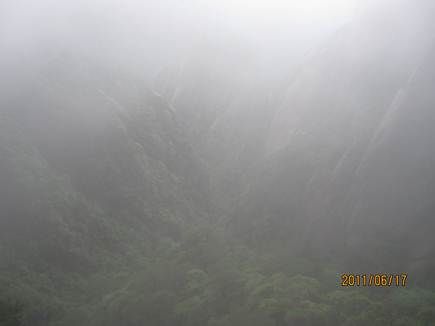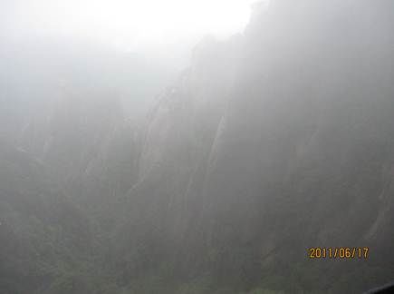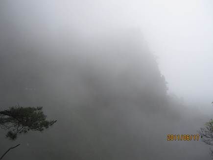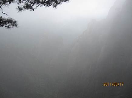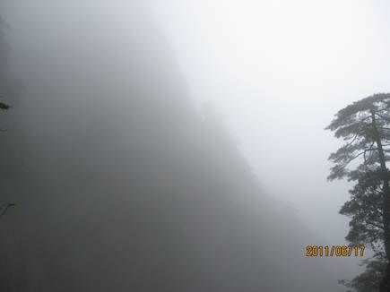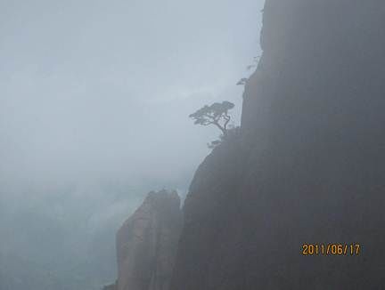 那天的三清山,由近而遠,霧色漸濃,仿佛進入仙境。近處的松,清晰可見,遠處的山巒在霧中若隱若現,時節已進入盛夏,山上仿佛依然初春。涼涼的風,輕輕地吹著薄薄的雨衣,靜靜地感受著風吹雨衣的聲音,柔柔的呼吸著大山中的有氧離子,心里頓時得到釋放。
