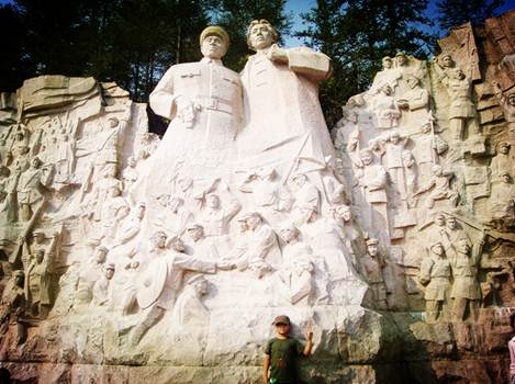晚上我們到井岡山市區,觀看紅軍劇場的井岡山大型實景演出。整個演出由600多名當地的群眾演員參演,雖然演員都是業余的,但1個多小時的演出卻是感人肺腑。尤其是賀子珍把孩子托給老鄉大媽與孩子離別的這場戲,很多觀眾都流下了眼淚。演出的最后毛主席帶領紅軍離開井岡山,幾百人的紅軍隊伍,牽著騾馬,經過觀眾席與大家道別后依次列隊劇場出口的兩旁,送觀眾出場,與觀眾合影,感覺好像回到了那個軍民一家親的年代。
