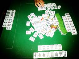 在南昌閑暇時的消遣,居然一場麻將四家清一色,打得真是歡樂!!(備注:正方是偶,自摸三家,我左邊的筒子極品自摸兩家。對面的條子沒成功,點炮給了萬字極品,哈哈。)