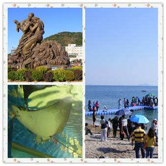 第三天也是我們行程的最后一天了,這一天行程也很緊湊首先來到了俄羅斯風(fēng)情街,在哪里才真正知道了歐洲的建筑風(fēng)格。最后一個(gè)景點(diǎn)也是此行我最期待的棒棰島,棒棰島位于大連市濱海路東段,大連市東南約5公里處。是一處以山、海、島、灘為主要景觀的風(fēng)景勝地。國(guó)內(nèi)幾大國(guó)賓館之一、著名的棒棰島賓館就坐落在這里。這里三面環(huán)山,一面瀕海;北面為群山環(huán)繞,南面是開闊的海域和平坦的鵝卵石沙灘。棒槌島名字的來歷是因離岸500米遠(yuǎn)處的海面上有一小島突兀而立,遠(yuǎn)遠(yuǎn)望去,極象農(nóng)家搗衣服用的一根棒槌,故稱棒槌島。在哪里體會(huì)了大連海水的美麗。大連極地海洋世界那里是孩子們的天堂,國(guó)慶人山人海我和同事還是帶著兒子看了動(dòng)物表演!其樂無窮撒!
