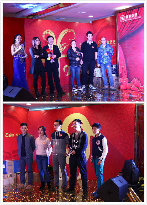 商科多才!2014年度表彰大會是今晚的首要部分,公司對一年以來在工作上表現優異的員工分別頒發了“敬業員工”、“優秀員工”、“優秀主管”、“優秀經理”等稱號,并為每位獲獎員工頒發了獎狀和豐厚的獎金,以肯定他們為公司做出的努力和貢獻。