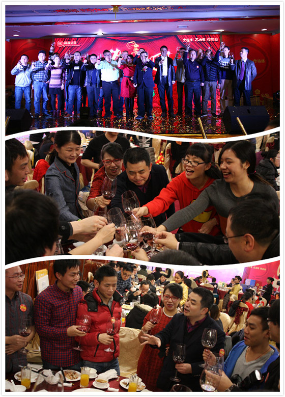 看完精彩的節目,天色已完全暗下來,大家已饑腸轆轆,酒店已經開始端上可口的飯菜。晚宴開始前,孫總上臺為大家獻上新年的祝福,并攜同各部門經理上臺為大家祝酒。祝酒結束,晚宴正式開始