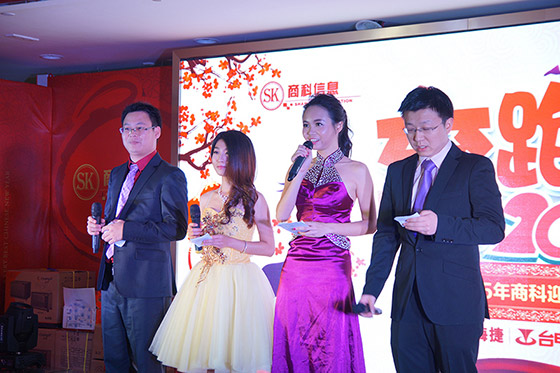 隨著人員的到來,商科集團2015年迎春聯歡會在下午3點鐘正式開始。隨著四位主持人也閃亮登場,這場盛會拉開了序幕!