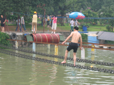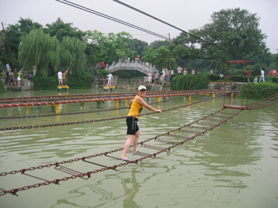 有個(gè)“仙女”居然雙腳“離水”三尺,踩著繩梯悠閑自得的走來走去。