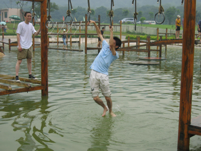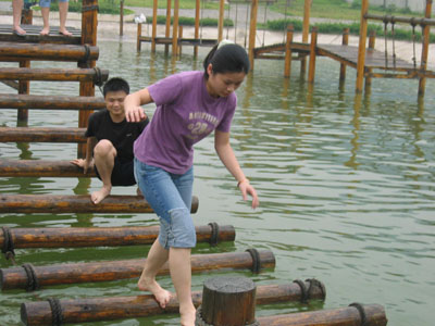 話說當(dāng)他們踏進(jìn)“笑翻天樂園”的時(shí)候,突然天地變色(下起了毛毛細(xì)雨),山崩地裂(人為的!),把商科等人去“東天”取“驚”的路給隔斷了。在沒有辦法之余,他們只有克服路上的妖魔鬼怪(自己想出來的)、重重苦難,齊心協(xié)力的過了第一關(guān)。