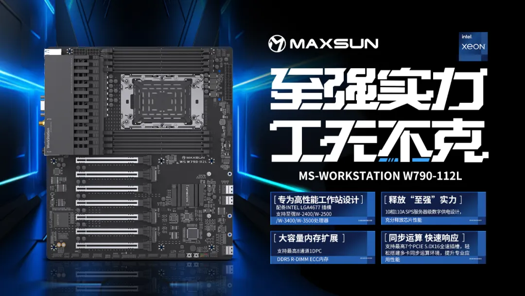 MS-WorkStation W790 112L是一款專為高性能工作站設計的工作站主板產品,可搭載Intel LGA4677插槽的至強W-2400和W-3400處理器,為用戶提供了卓越的計算性能和處理能力;同時主板采用了10相110A SPS服務器級數字供電設計,最高支持1000W+供電能力,穩定釋放性能,無論是進行復雜設計、大格式視頻特效還是AI工作負載,都能夠充分釋放芯片性能,輕松應對。