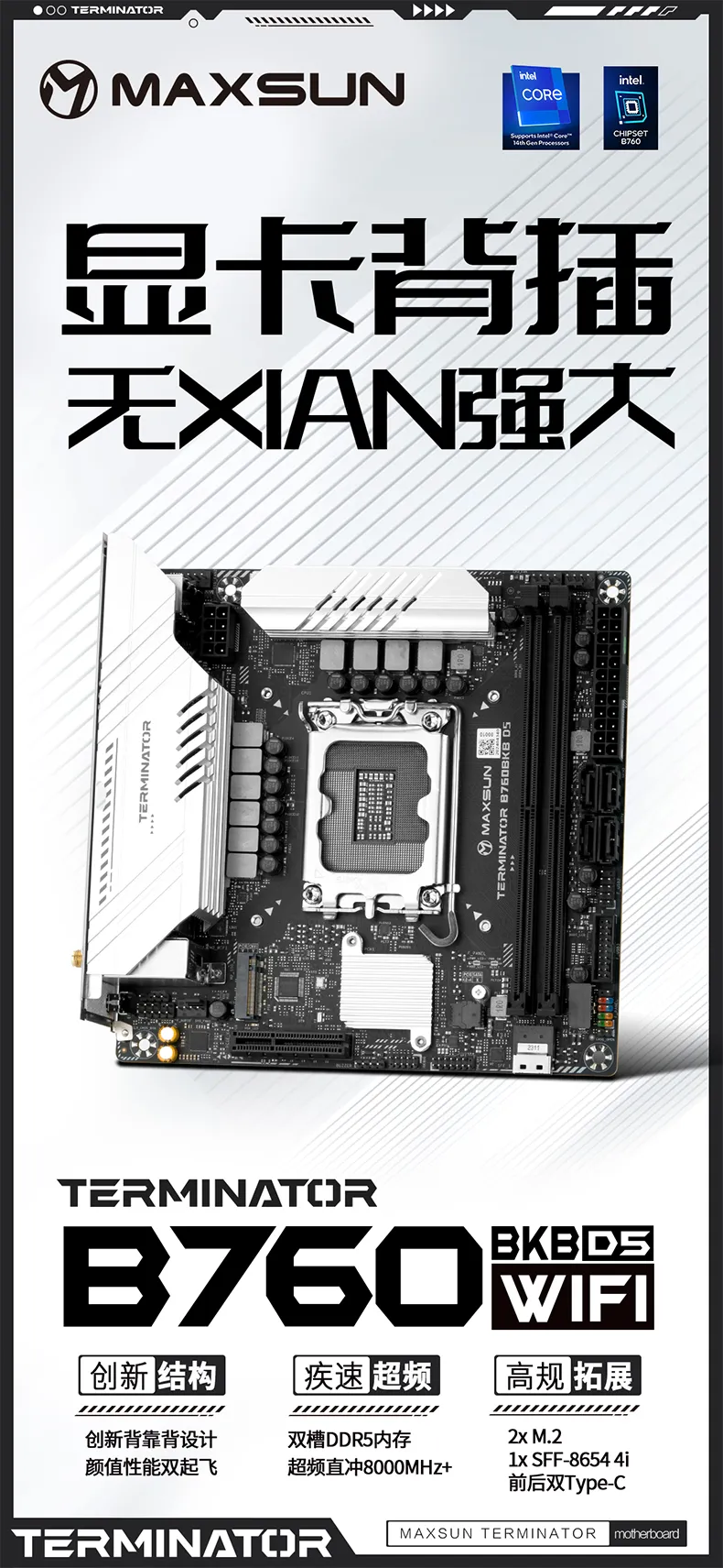 MS-Terminator Z890-A WIFI,充分釋放Ultra9 強悍性能,同時擁有Thunderbolt™ 4接口和PCIE5.0 x16顯卡插槽+PCIE5.0 x4 M.2接口,1*SFF-8654 4i拓展接口,Z890高性價比之選。