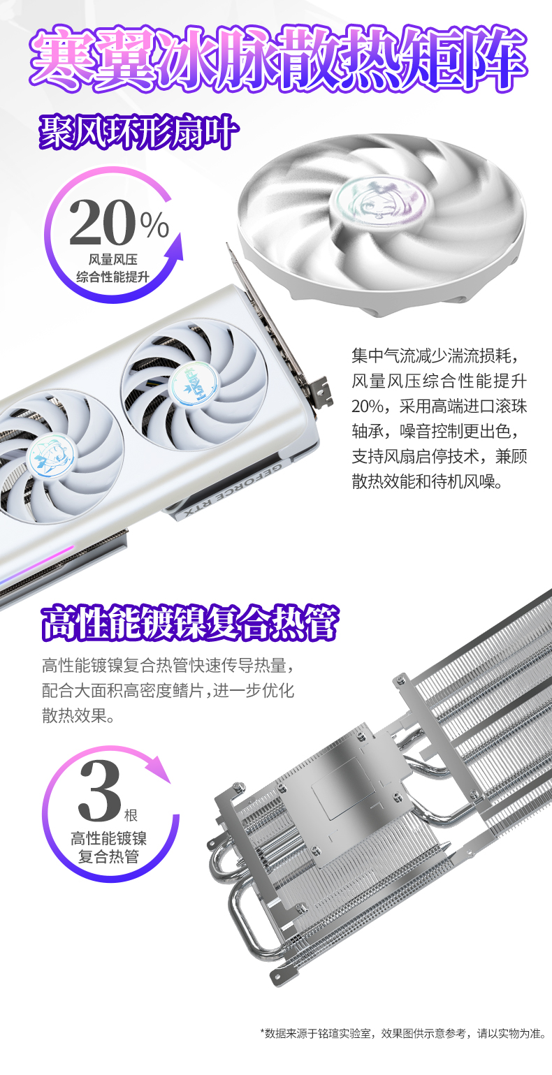 長時間沉浸式游戲,散熱與噪音控制是關鍵。銘瑄GeForce RTX 5060 Ti iCraft OC8G 璦珈顯卡配備了寒翼冰脈散熱矩陣,采用三風扇搭配高性能鍍鎳復合熱管快速傳導熱量,配合大面積高密度鰭片,進一步優(yōu)化散熱效果。風扇采用高端進口滾珠軸承,聚風環(huán)形扇葉設計能集中氣流、減少湍流損耗,讓風量風壓綜合性能提升 20%,同時噪音控制更出色。更貼心的是智能啟停技術,低負載時風扇自動停轉,實現(xiàn) "零噪音" 待機;高負載激戰(zhàn)時刻,風扇迅速啟動高效散熱,將核心溫度穩(wěn)穩(wěn)控制,讓玩家既能享受穩(wěn)定性能,又能遠離煩人的噪音干擾,全身心沉浸在《明日方舟:終末地》的冒險世界中。