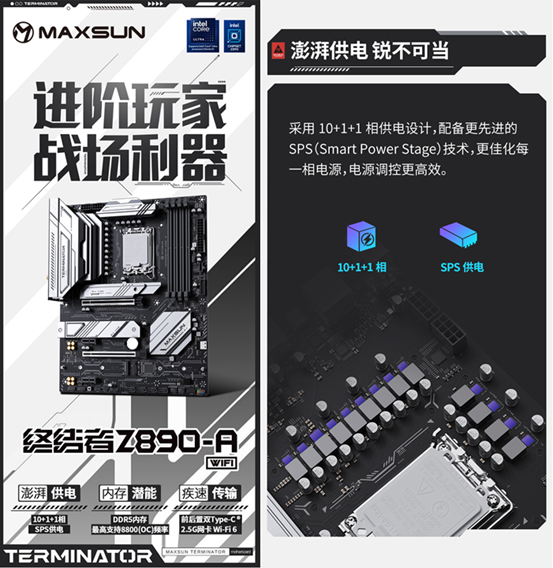 對于追求強悍性能的進階玩家而言,新年煥新電腦硬件的核心訴求,就是打造一臺能通吃 3A大作、高效搞定多線程任務的滿幀主機。而實現這一目標的關鍵,在于一套性能強悍且適配度拉滿的硬件組合。銘瑄Terminator Z890-A WIFI 主板,搭配英特爾酷睿 Ultra 7 265K 處理器強強聯手,正是為硬核玩家量身定制的戰力搭檔。它能充分釋放硬件的每一分潛能,從游戲鏖戰到創作辦公,都能帶來絲滑流暢的使用體驗,助力玩家以滿血狀態迎戰新一年的挑戰。