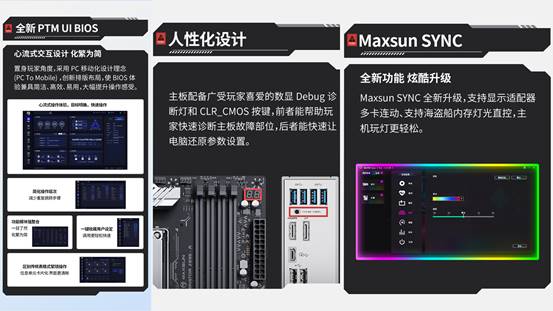 除了強悍的性能,這款主板在操作便捷性和個性化上也格外貼心。全新升級的 PTM UI BIOS,借鑒了手機 APP 的交互邏輯,采用模塊化設計,交互層級不超過 2 層。卡片式的界面一目了然,就算是裝機新手,也能輕松搞定 BIOS 設置。分布式 Debug 診斷燈和 CLR_CMOS 快捷按鈕,更是能快速定位故障,讓裝機過程省心又省力。它還支持RGB光效同步,可與顯卡、內存等外設實現燈光聯動,炫酷燈光效果隨心切換,無論是打造酷炫的黑色電競主機,還是組裝顏值爆表的純白海景房,都能完美適配,輕松拿捏氛圍感。