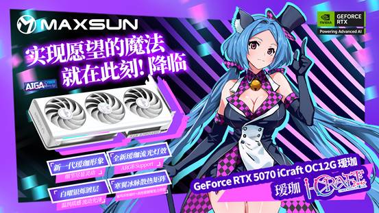 銘瑄 GeForce RTX 5070 iCraft OC12G 璦珈顯卡不僅性能強勁,顏值也十分出眾,高度契合玩家的審美需求。外觀上延續了溫潤質感的設計基調,采用全新白曜銀爍鍍層,通過環保免噴涂注塑工藝,無需化學噴涂即可實現珍珠白漸變閃銀效果,從溫潤乳白到冷峻銀輝,每一道光影折射都呈現出獨特質感。側邊創新加入星河流光燈條,搭配升級的 ARGB 燈光同步燈效,玩家通過包裝附帶的 ARGB 5V3Pin 燈光同步線與主板連接,即可實現燈光同步,燈光流轉間如同賽博世界的魔法光芒,靈動又吸睛。高強度合金背板不僅為顯卡提供了穩固防護,防止顯卡因自重而彎曲,還搭載了 Q 版璦珈燈效,萌力與科技感完美融合,讓顯卡即便靜置時,也能成為桌面一道亮眼的風景。