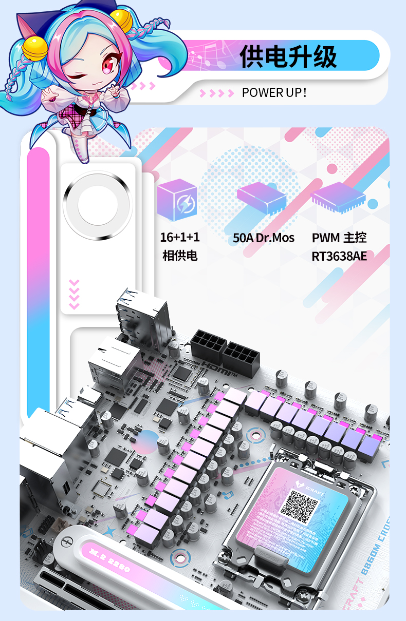 銘瑄 iCraft B860M CROSS PRO主板憑借二次元美學設(shè)計、強悍的供電性能、出色的內(nèi)存潛力、豐富的拓展接口、穩(wěn)定的網(wǎng)絡(luò)連接、便捷的操作體驗和個性化的燈光效果,成為英特爾酷睿Ultra 200S Plus系列處理器的新芯性能搭檔,更是打造個性化主機玩家的裝機優(yōu)選。3 月 26 日新處理器正式開售,選擇銘瑄 iCraft B860M CROSS PRO主板,讓你在打造高顏值個性化主機的同時,輕松解鎖新芯滿幀戰(zhàn)力,從容迎戰(zhàn)游戲、創(chuàng)作、辦公等各類使用場景,開啟顏值與性能雙在線的硬件全新體驗!